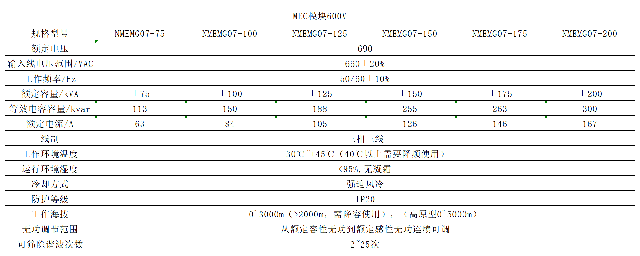 | 產品 | 新能動力MEC模塊 | TSC+APF | 其他SVG+APF |